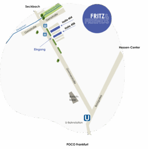 Die Anreise in die Gwinnerstraße 46 (nähe Batschkapp!) erfolgt am besten mit dem Fahrrad oder mit dem Auto, im Hof sind ausreichend Stellplätze vorhanden. Mit öffentlichen Verkehrsmitteln erfolgt die Anreise am besten über die U7/U4, Station Gwinnerstraße, und von dort ein ca. 13-minütiger Spazierweg oder 2 Stationen mit dem Bus zur Station Gelastraße.