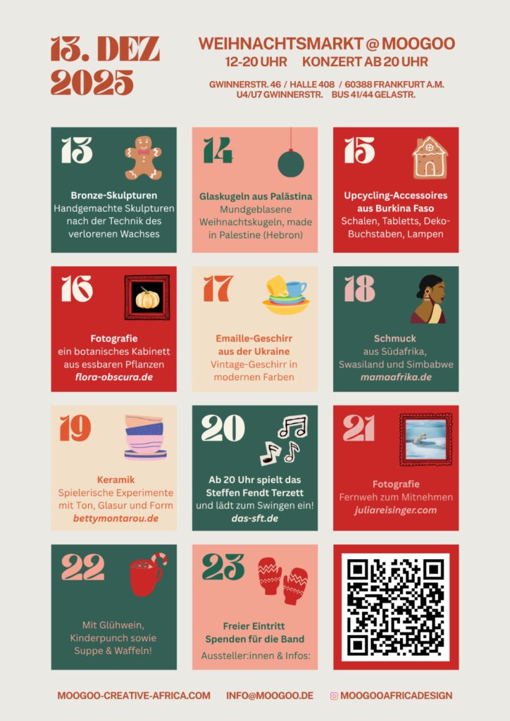 13. Dezember 2025: Eintägiger Kunstweihnachtsmarkt bei Moogoo Creative Africa